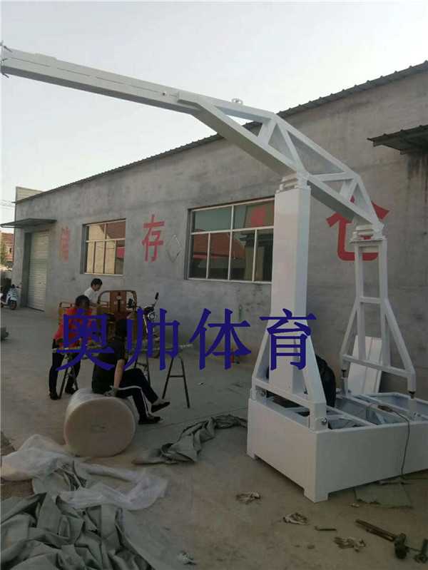 白色電動(dòng)液壓籃球架生產(chǎn)完成組裝調(diào)試中,測(cè)試伸臂的靈活性,生產(chǎn)組裝電動(dòng)液壓籃球架我們是專業(yè)的,歡迎新老客戶來(lái)本公司觀摩考察!