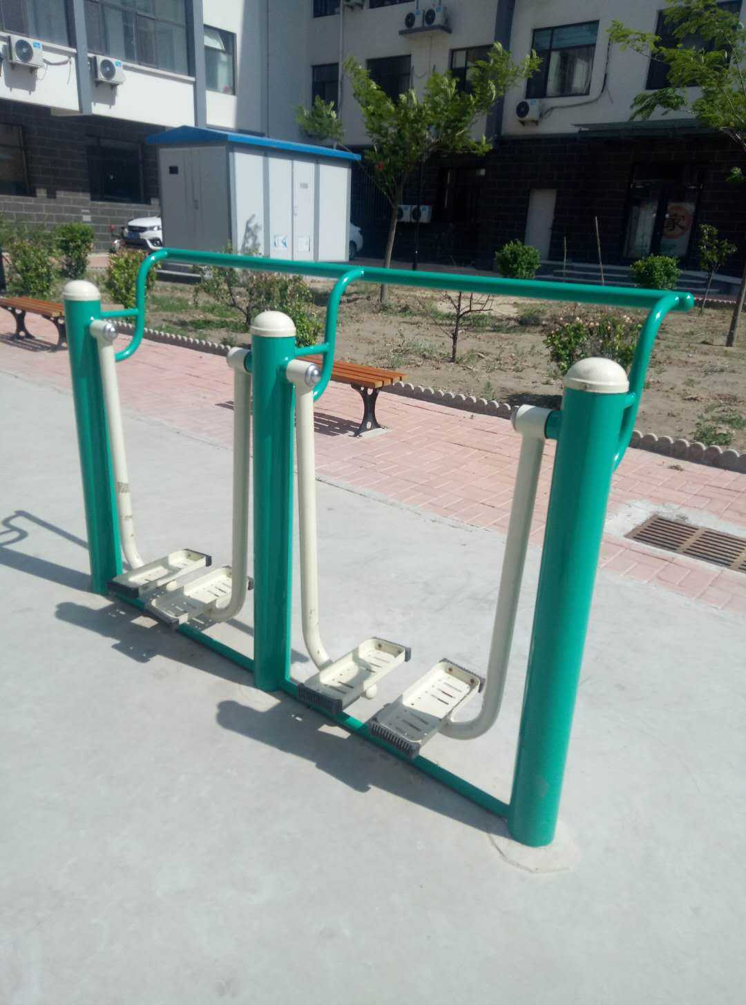室外健身器材又叫室外路徑,一般常用的有:雙人漫步機,坐蹬器,肩關(guān)節(jié)康復器、轉(zhuǎn)腰器、棋牌桌、腹肌板等。